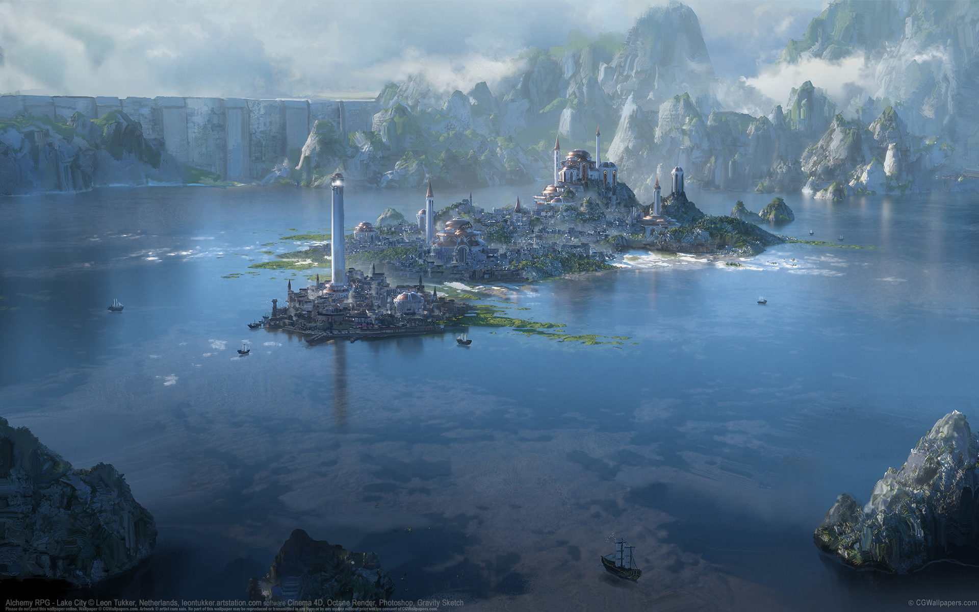 Alchemy RPG - Lake City © Leon Tukker, Netherlands software Octane Render, Cinema 4D, Photoshop, Gravity Sketch