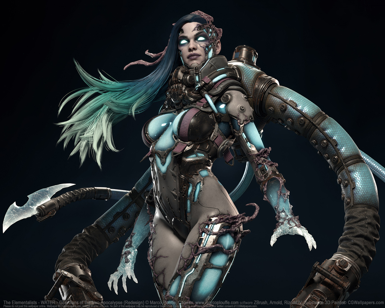 The Elementalists - WATER - Guardians of the Neo-Apocalypse (Redesign) © Marco Plouffe, Canada software ZBrush, Arnold, RizomUV, Substance 3D Painter